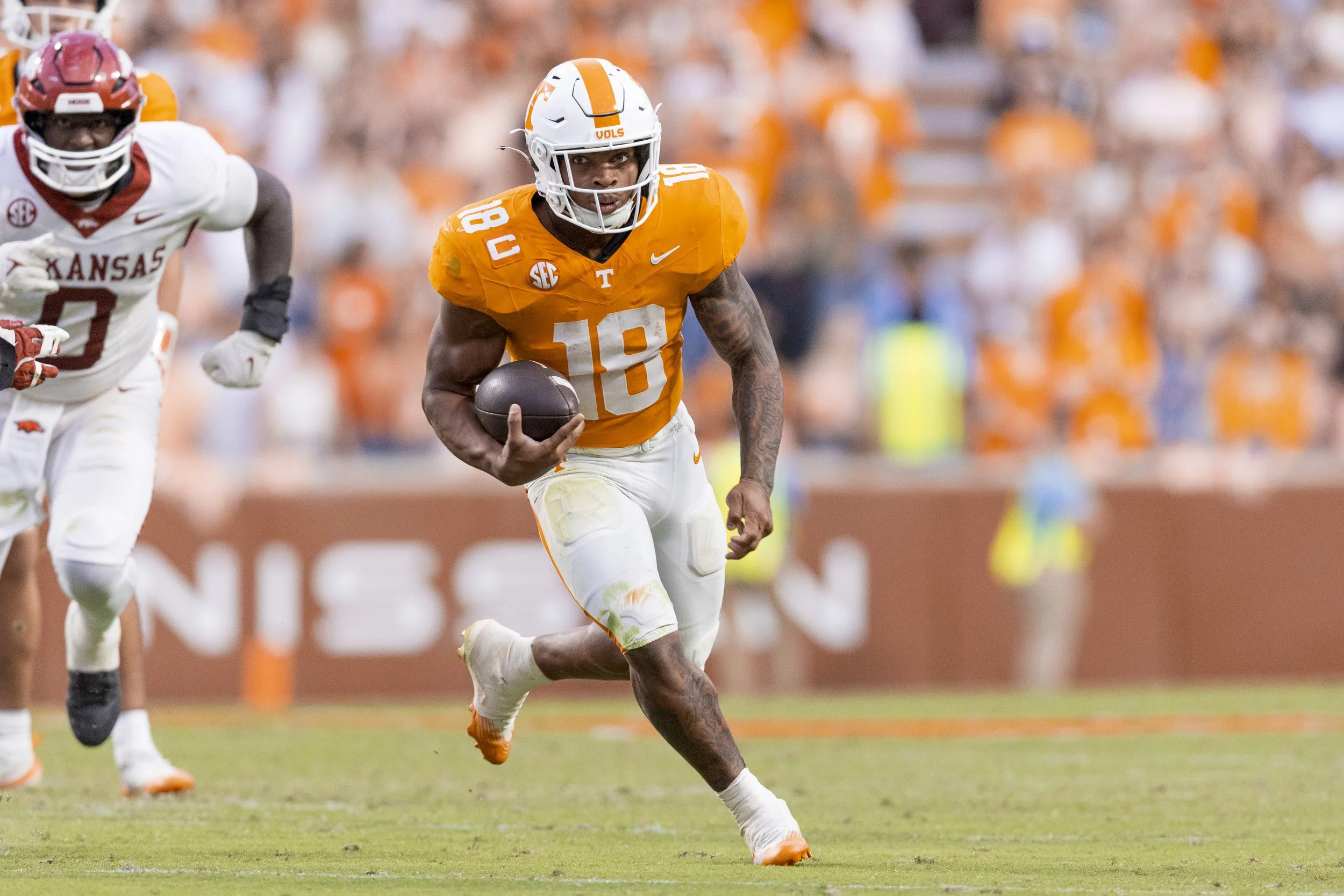 Bishop rushed for a career-best 146 yards on 14 carries with one touchdown in Tennessee’s 34-31 victory over Arkansas. He averaged 10.4 yards per carry and 64 of his yards came after contact. Bishop posted a 17-yard touchdown run in the first quarter. Bishop became the fourth Tennessee running back (QB Joshua Dobbs did it twice) in the last 19 seasons (2007-25) to total 140-plus rushing yards and average 10-plus yards per carry, including the only player to do so in a home SEC contest.