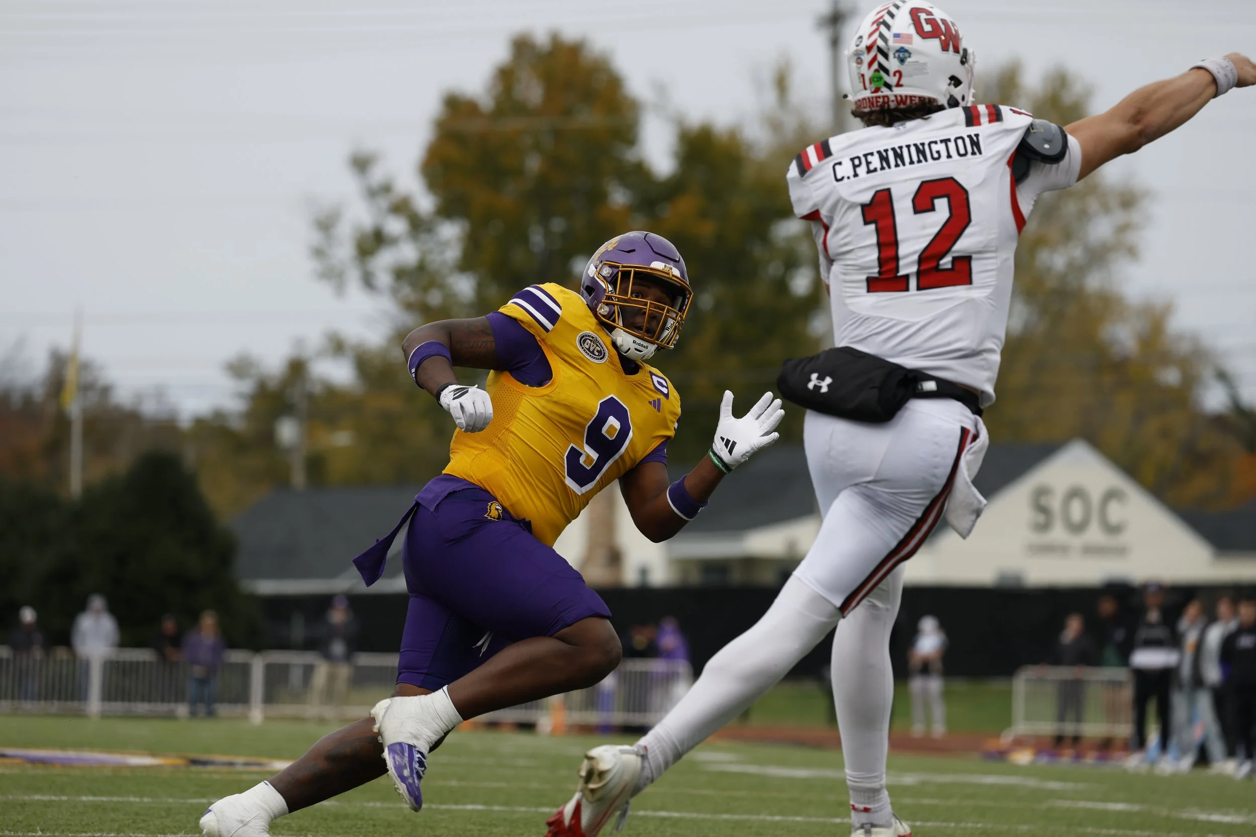 Gaines posted a season-high 11 tackles, six solo, recording two sacks and two quarterback hurries. He also recovered a fumble that he returned 10 yards for a touchdown with 3:50 remaining in the contest, his second defensive score of the season, putting the game away in a 21-9 victory against Eastern Illinois. He collected a sack on EIU’s first offensive snap of the game and added another later in the fourth quarter after the fumble return. Theron leads the Golden Eagles with 71 tackles this season and has 6.5 sacks and a team-best 13.5 tackles for loss